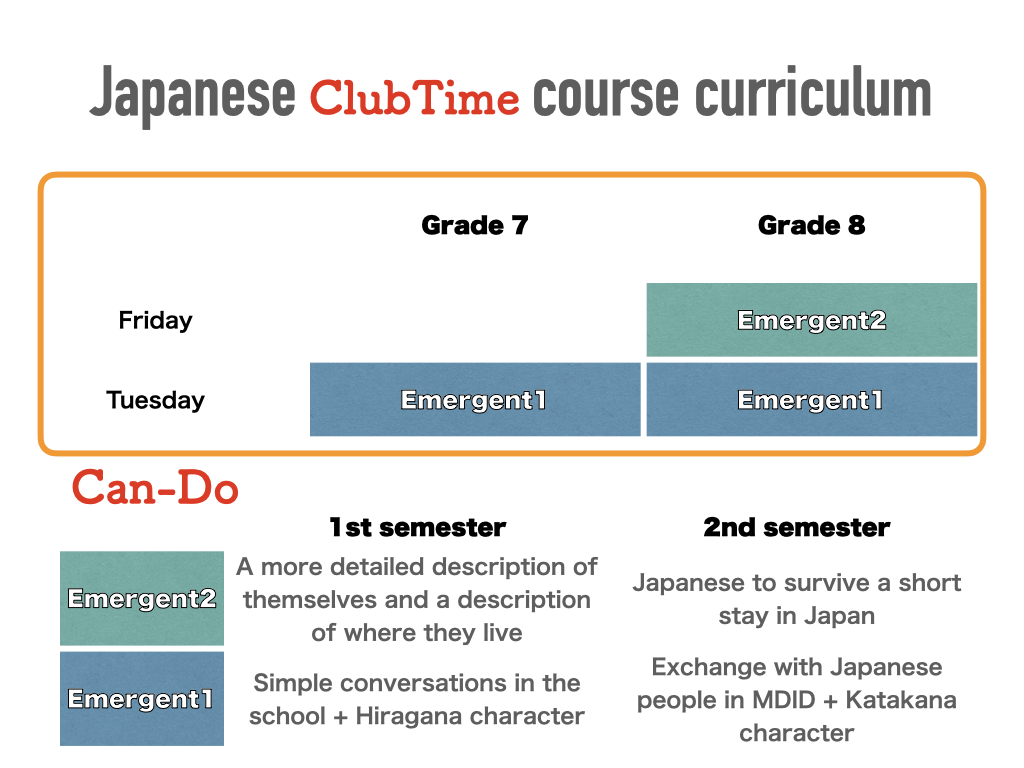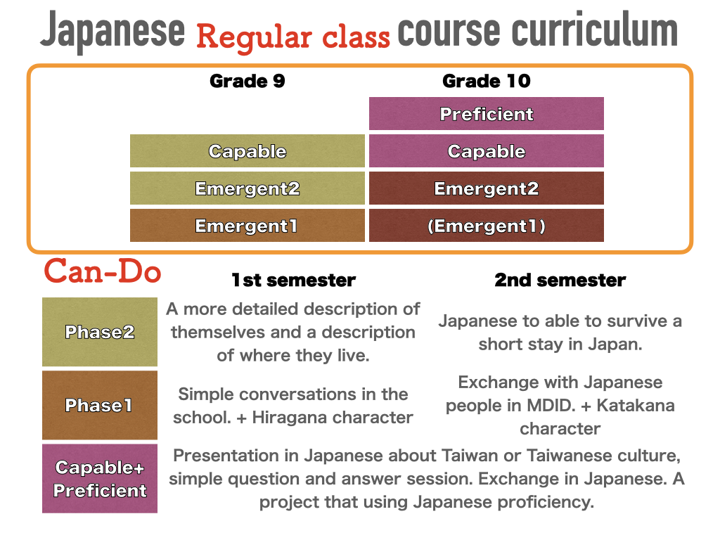 MDID Japanese course 6 years curriculum (明道國際部日文課程)